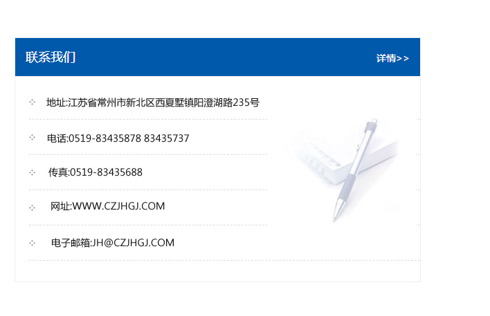 地址:常州市新北區友邦商務大廈1幢16、17層  電話:0519-85101652  傳真:0519-85112595  郵編:213022  網址:www_cz-jiayue_cn.lfliangda.com  郵箱:xiajifengaa@163.com
